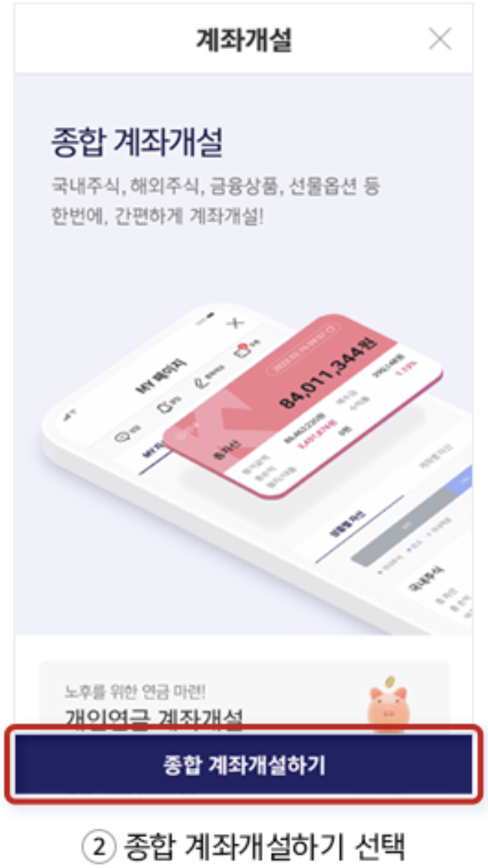 2) 종합 계좌개설하기 선택