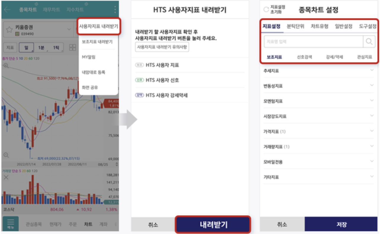 7) HTS 수준의 종목차트(HTS 사용자지표 가져오기, 다양한 보조지표 제공)
