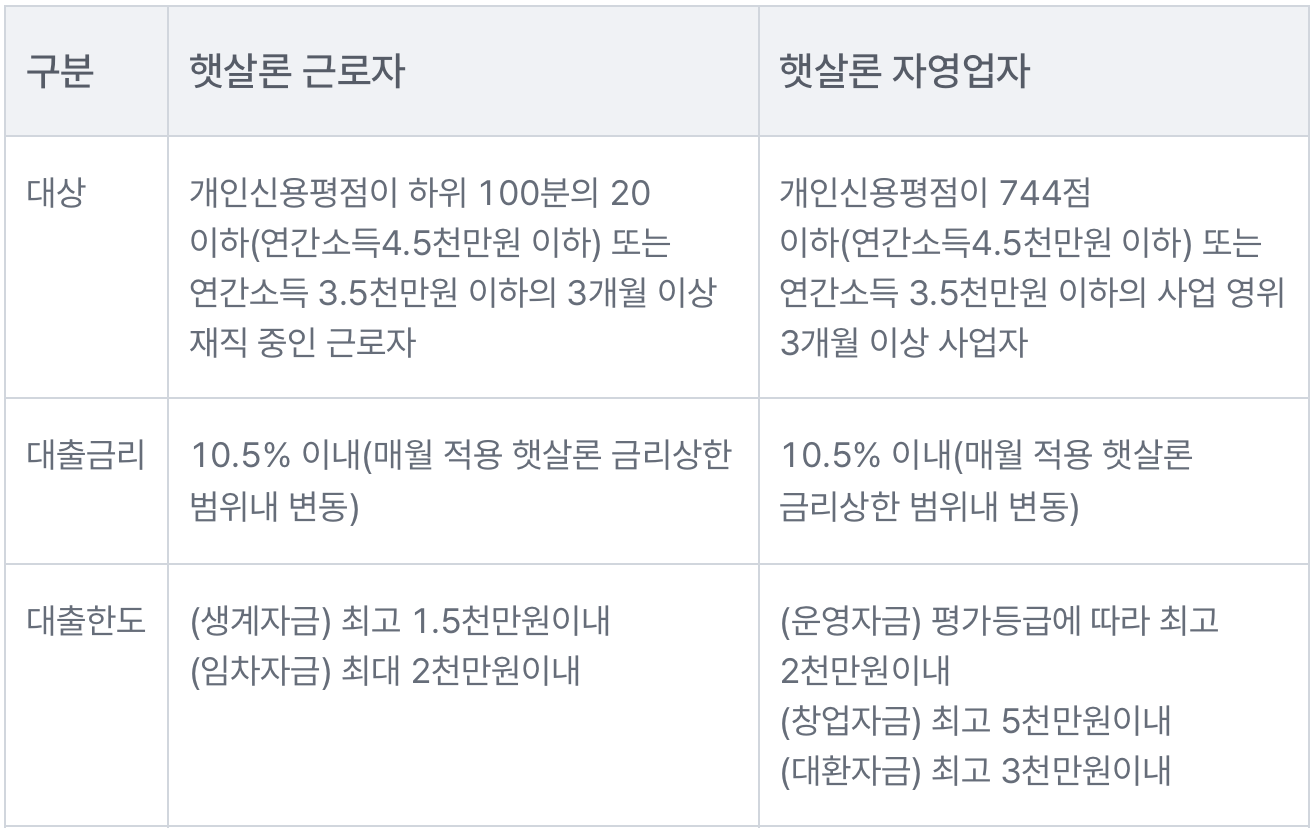1) 햇살론 근로자