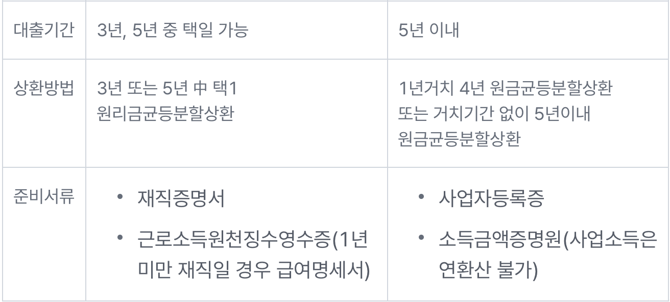 - 대출기간: 3년, 5년 중 택일 가능