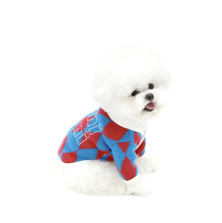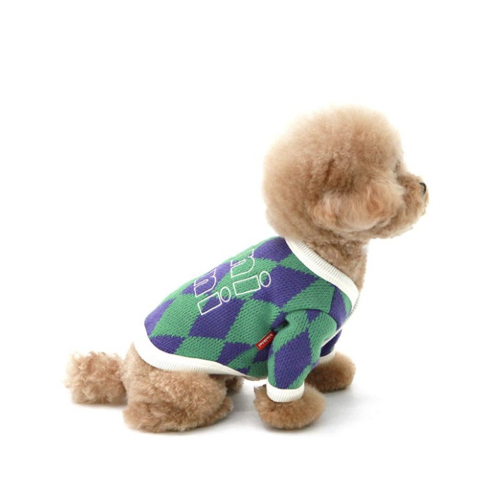 바로가기 강아지 의류 전문 브랜드 “키니키니”의 다이아몬드 패턴 가디건은 귀여움과 보온성이 강점입니다.
