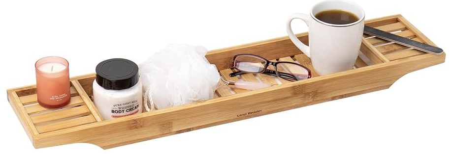 목욕을 즐기면서 태블릿으로 영화를 보거나 와인 한 잔을 함께 하는 일을 두 배로 편리하게 만들어주는 대나무 트레이를 소개합니다. 별도의 조립 없이 대부분의 욕조 사이즈에 맞는 이 트레이는 물기에 강해 쉽게 곰팡이가 피거나 변색되지 않습니다. 로맨틱하고 따뜻한 순간을 선물하세요.