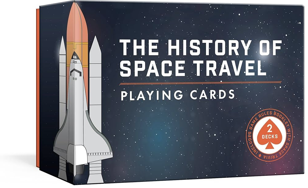 1961년부터 오늘날까지의 우주 미션에 이용되었던 우주비행선과 우주복 등으로 꾸며져 있는 카드게임 세트는 과학과 게임을 사랑하는 아이들에게 최고의 선물이 될 것입니다. 튼튼하고 탄성이 좋은 카드 세트는 고품질의 프린팅을 자랑하며 게임 규칙을 설명하는 리플렛 또한 우주비행 매뉴얼을 본따는 세심함을 갖췄습니다.