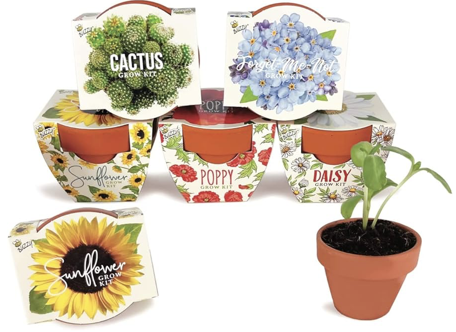 Buzzy의 식물 기르기 키트에는 6개의 미니 테라코타 팟과 식물이 자랄 수 있는 펠릿 그리고 해바라기, 데이지, 양귀비, 선인장, 물망초 등 총 6개의 씨앗으로 구성되어 있습니다. 각각의 키트는 각각 안전하게 포장되어 배송되며 실내외에서 두루 잘 자랍니다. 집에 머무르는 시간이 길어지는 요즘, 반려식물과 함께 하시는 건 어떨까요?