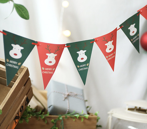루돌프가 그려져 있는 깔끔한 종이 크리스마스 가랜드. 가격 1,200원.