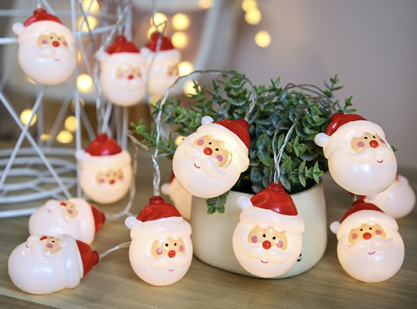 크리스마스에 빠질 수 없는 산타 할아버지의 행복한 미소. 휴대하기도 좋고 다른 소품들과도 꾸미기 좋은 트리전구 산타조명. 미니트리에 꾸며보거나 벽에 걸어두면 귀여운 포인트 장식으로써 안성맞춤이다. 가격 7,500원.