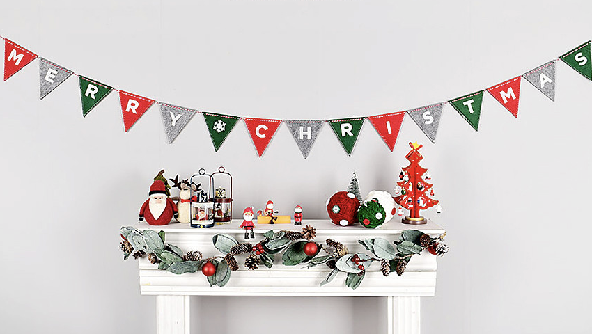 따뜻해 보이는 펠트 원단의 크리스마스 가랜드. 레드, 그린, 그레이, 화이트 컬러로 혼합되어 있어 매력적이며 도톰한 두께의 고급스러운 펠트 원단으로 영구적으로 사용 가능한 소재의 가랜드다. 가격 8,800원.