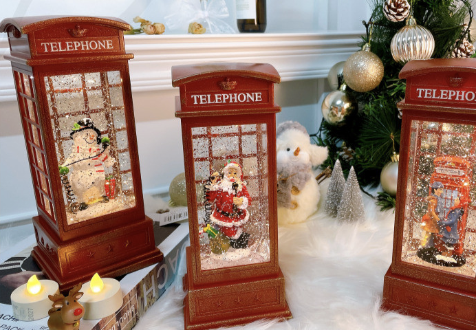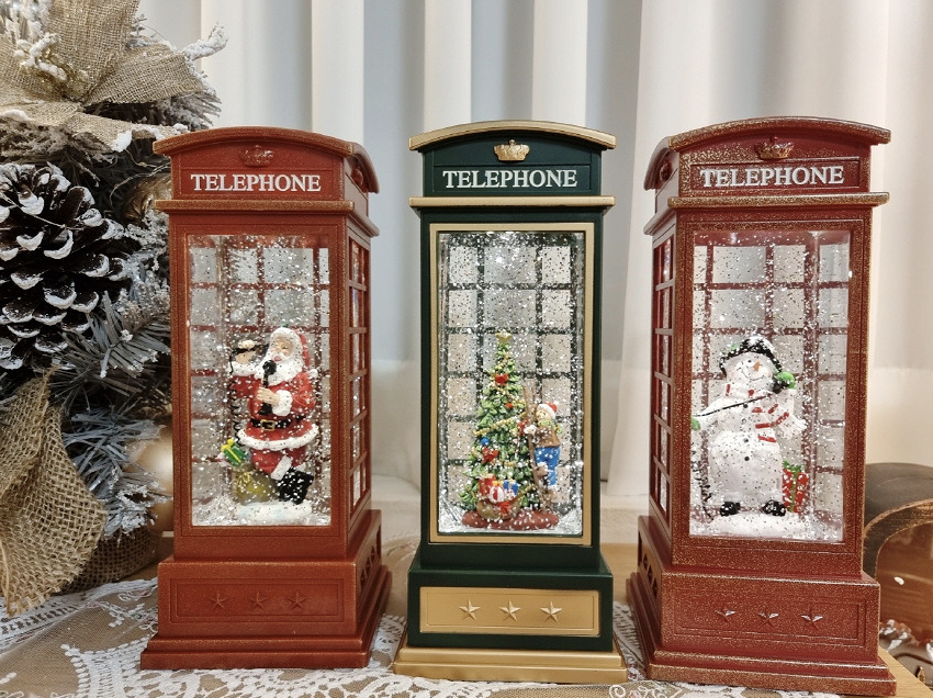 6. 감성스텔라 LED 캐롤 크리스마스 오르골 마을 레트로 티비오르골 블루투스 전화부스오르골 램프 감성스텔라