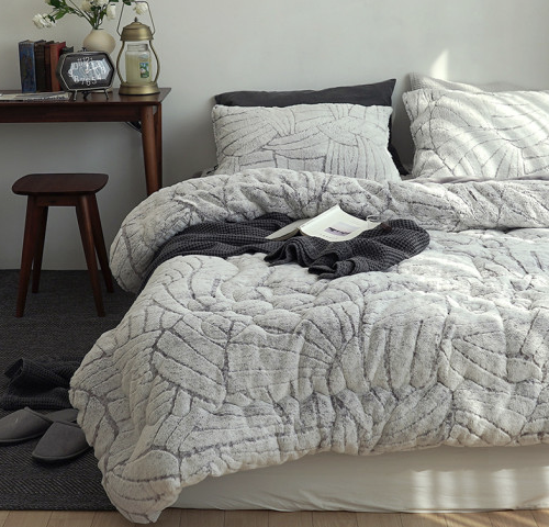 트렌디하고 모던한 디자인의 고중량 프리미엄 장모 극세사로 극세사 결에 따라 느껴지는 부드러운 광택감과 10mm 착번아웃 기법으로 입체감과 터치감을 살려 제작됐으며 마이크로 극세사로 먼지가 적고 진드기를 차단하는 기능성이 더해져서 피부가 예민한 사람들도 안심하고 사용할 수 있다.