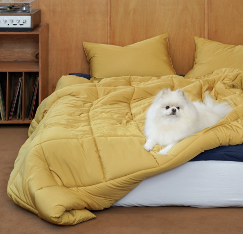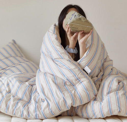 한겨울 내내 덮기 좋은 두툼한 두께와 풍성한 쿠션감으로 뒤척임에도 찬바람 셀 틈 없이 묵직하게 몸을 감싸주어 더욱더 깊고 포근한 잠자리를 선사한다. 가격 63,800원.