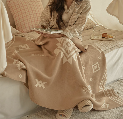 캠핑장에서도 감성 있게 사용할 수 있으며, 추운 사무실에서 편하게 작업하고 싶을 때도, 아이들과 반려동물도 만족도 최상인 스타일리쉬한 담요. 가격 7,900원.