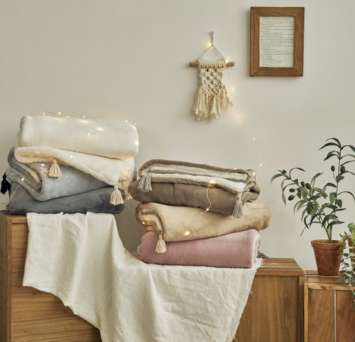 양털 극세사 담요는 양털 극세사와 플란넬 극세사 원단을 양면으로 매치하여 더욱 두툼하다. 보온성이 아주 뛰어나 한겨울에도 걱정 없는 아이템. 4가지의 내추럴한 컬러로 구성됐으며, 태슬 장식으로 포인트를 주어 고급스러운 느낌이 든다.