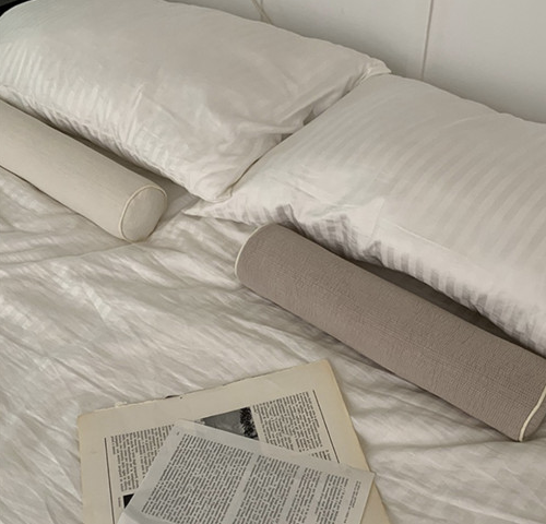 목을 편안하게 받쳐 경추를 보호해주는 원통형 및 반달 경추베개. 지퍼 분리로 세탁이 매우 편리하고, 속메밀 베개에도 지퍼가 달려 있어 높낮이 조절이 가능해 본인의 체형에 맞게 조절할 수 있다. 가격 12,800원.