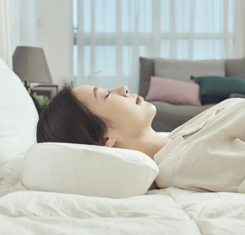 옆으로 누워 자는 사람들을 위해 마사지 돌기, 헤드순환 서포트, 귀눌림 방지홀 등 세심하게 디자인하였으며, 건강한 경추 형태인 C커브를 바르게 유지하여 목의 긴장감을 최소화시켜주고 안정감 있는 숙면을 돕는다.