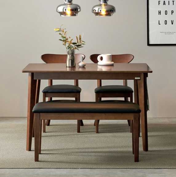 3. 보니애가구 노블 고무나무 원목 4인 식탁세트 벤치형