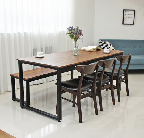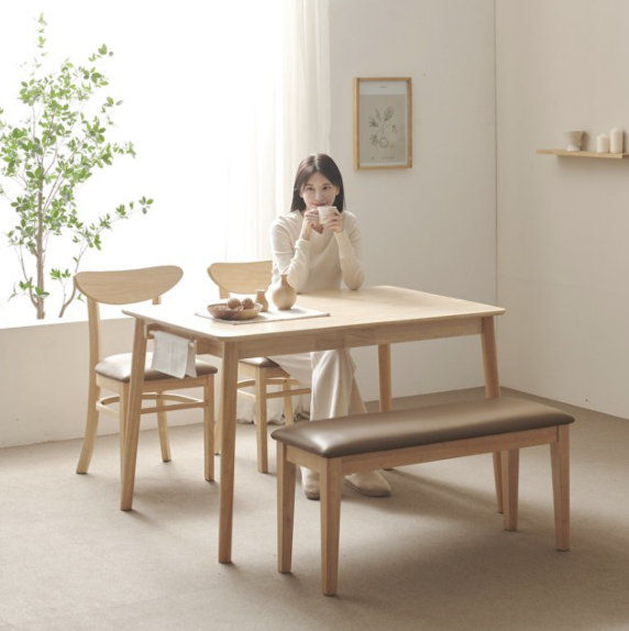 4. 가구의가치 굿모닝 원목 4인 식탁 세트 벤치 + 의자형