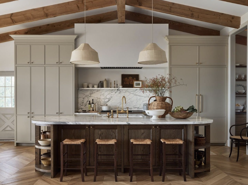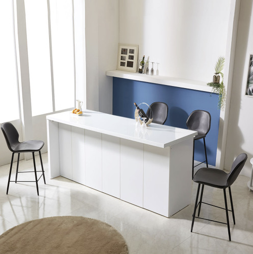 깔끔한 수납과 편안한 식사 공간을 만들 수 있는 홈바 아일랜드 식탁.