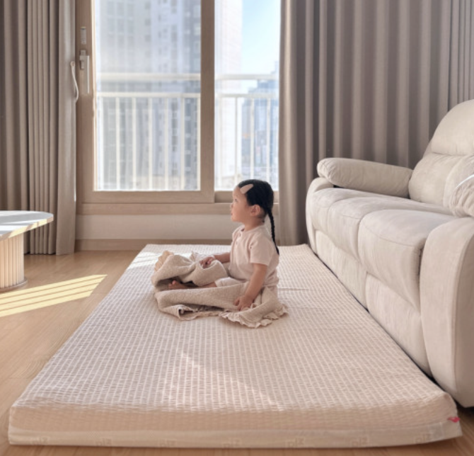 뒤집기 시작한 아기랑 함께 잘 하드토퍼가 필요하거나 침대 매트리스가 오래되어 허리가 불편하거나, 바닥이 느껴지지 않고 탄탄하게 오래 사용하고 싶거나, 지인이나 부모님 방문 시 더욱 안락한 잠자리를 선사하고 싶거나, 다둥이들 침대 사기 전에 토퍼로 수면독립을 시키고자 하는 경우라면 추천하는 매트리스다. 가격 99,000원.