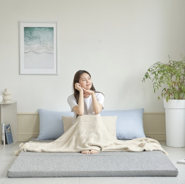 라텍스, 메모리폼과 다르게 전기매트도 사용할 수 있으며 통기성이 높아 매트리스 속까지 물세척이 가능하다. 거실에서, 좁은방에서, 접어서 쇼파처럼 사용할 수 있다. 가격 149,800원.