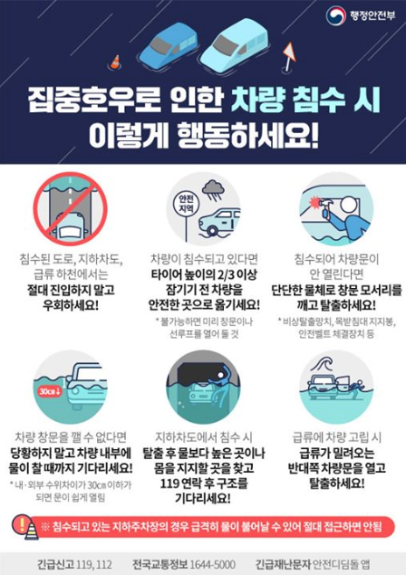 집중호우 발생 시 행동요령 및 침수피해 대처법을 비롯한 7개 시·군 집중호우 특별재난지역 선포, 집중호우 피해 복구에 관해 알아보도록 하겠다.