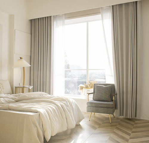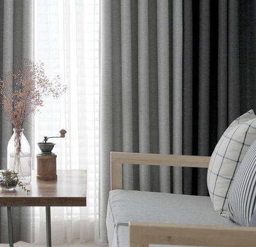 원단 가운데 블랙 암막사를 넣어 직조한 3중직 암막원단을 사용해 창을 통해 들어오는 과도한 빛과 자외선을 효과적으로 차단하고, 공간에 따라 다르게 필요한 채광 80%부터 100% 암막률까지 원하는 채광에 따라 폭 넓게 커튼을 선택할 수 있다.