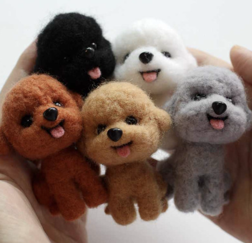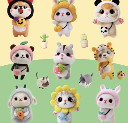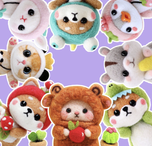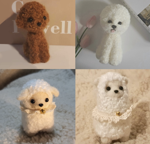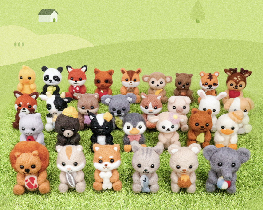바늘로 솜을 콕콕콕 찌르기만 하면 인형이 만들어지는 자체 제작 디자인 상품. 강아지 인형 키트는 푸들, 비숑프리제, 보스턴테리어, 치와와, 비글, 말티즈 중 선택할 수 있고, 그 외 동물 인형 키트로는 알파카, 양, 토끼, 거북이 등이 준비되어 있다.