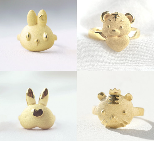 토끼 순금 돌반지는 포동포동 귀여운 아기 토끼의 특징과 달 모양의 디자인 포인트를 살려 디자인되었다. 동글동글하고 깨끗한 마감으로 안전하게 착용할 수 있다. 가격 205,900원.