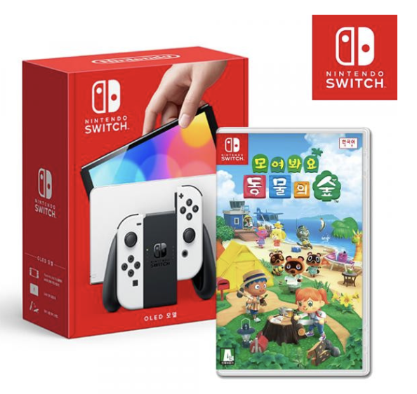 3. 닌텐도 스위치 본체 신형 OLED화이트+모여봐요 동물의숲 게임팩 패키지세트
