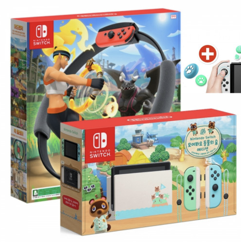 4. 닌텐도 스위치 본체 동물의숲에디션+링 피트 어드벤처 세트+OLED공용 조이콘커버 악세사리