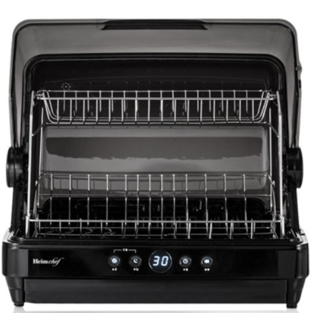 60L 초대용량으로 다인가족의 식기를 건조, 보관하기 용이하다. 환경호르몬 걱정 없이 저가의 플라스틱이 아닌 내부 및 트레이는 스테인리스, 도어는 강화내열유리를 이용해 제작하였다. UV살균 & 열풍건조로 물기, 세균, 바이러스를 제거 및 억제하여 식중독을 예방한다. 약 75% 농도 프리미엄 다크글라스는 UV파장으로부터 사용자를 보호하며, 문을 열지 않고 내부의 식기를 확인할 수 있다. 가격 159,000원.
