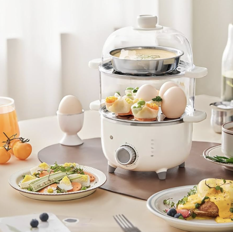1단부터 2단까지 크기와 용량을 마음대로 조절할 수 있으며, 최대 30분 타이머 기능이 있어 시계 볼 필요 없이 편리하게 조리할 수 있다. 2단 사용 시 계란을 최대 16개까지 한 번에 찔 수 있다.