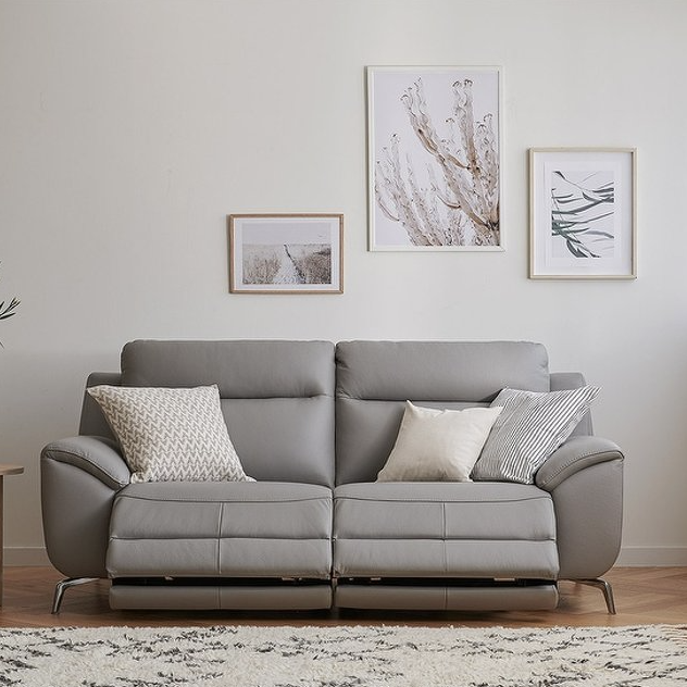 3. 한샘 MVME 프라임 리츠 천연면피가죽 전동 리클라이너 3인용 소파