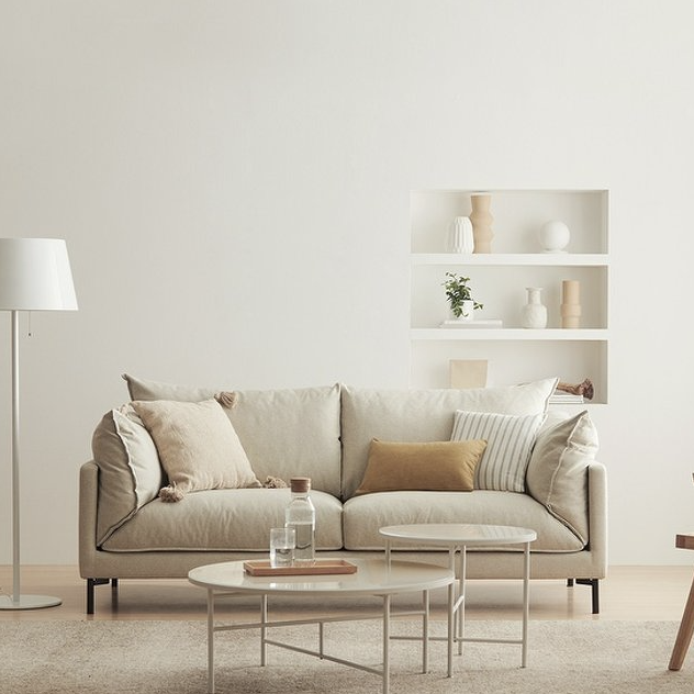 ✓ 오브제 소파: 어디에 두어도 잘 어울리는 심플한 디자인에 라운드 포인트가 더해진 낮은 높이의 소파