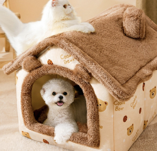 5. 멍멍군나비양 강아지 고양이 숨숨집 애견 이불 침대 곰돌이 하우스 S