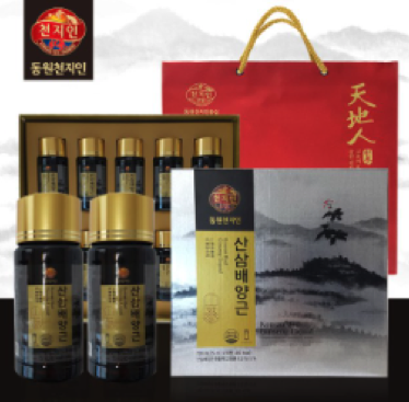 산삼배양액 브랜드 제품 추천 종류 후기 순위 다섯 번째, 천지인 산삼 배양근 제품은 주원료 산삼배양근추출액 (고형분 0.3%, 국산) 5% 외에 홍삼, 칡, 숙지황 등 다양한 전통 부원료를 한 병에 모두 담았다. 언제 어디서나 간편하고 스마트하게 [동원천지인 산삼배양근] 한 병으로 건강 챙길 수 있다. 가격은 95,000원이다.