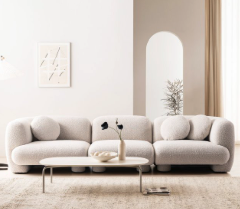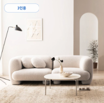 리바트 패브릭 소파 쇼파 브랜드 제품 추천 종류 후기 순위 여덟 번째, 리바트 오브니 3인 부클레 패브릭 소파 제품은 둥글둥글한 디자인의 포근한 소파로 구름 같은 디자인의 오브니 소파는 탄탄하면서도 아늑한 착석감을 위해 40kg, 36kg, 24kg 고탄성 스펀지를 여러 번 레이어드 해서 완성되었다.