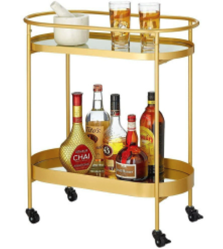 가정용 서빙카트 브랜드 주방 핸드카 이동식 트롤리 제품 추천 여덟 번째, 디자인엠 mDesign Stylish Modern 제품은 거울 트레이 탑 롤링 서빙 바 카트 2단 타원형 가정용 음료 랙 트롤리 주방 가구 바퀴포함 와인 컵받침 유리 맥주 및 음료용으로 활용할 수 있는 것이 특징이다.