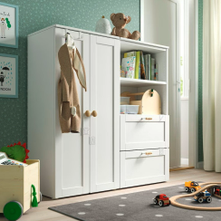 아이만의 옷장을 선물하여 아이 스스로 정리 정돈하는 습관 키워줄 수 있다. 작지만 충분한 수납공간으로 아이의 옷을 수납할 수 있어 실용적이다. 공간의 인테리어를 하층 더 세련되고 고급스럽게 연출한다.
