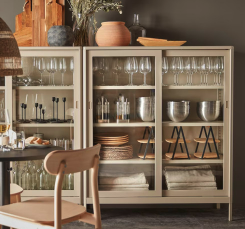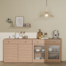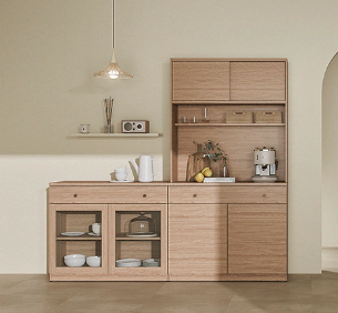 우수한 수납력은 기본, 감성 가득한 디자인으로 완성된 대표 수납장이다. 레트로 감성의 고방유리를 적용한 도어로 디자인뿐 아니라 실용성까지 높였다.