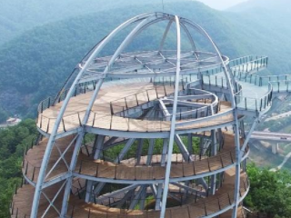 단양 가볼만한곳 베스트 10 네 번째! 남한강 절벽 위에서 약 80~90m 수면 아래를 내려보면서 하늘 길을 걸어보는 스릴을 맛볼 수가 있는 스카이워크로서, 시내전경과 멀리 소백산 연화봉을 감상할 수 있다. 발밑 약 100m 아래 강물을 내려다보면서 걷는 경험을 해볼 수 있다. 내려갈 때에는 짚와이어나 알파인코스터를 이용해볼 수 있다.