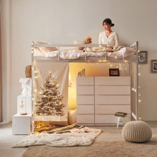 철제 벙커 침대 브랜드 성인 학생 어린이 책상 선반 세트 제품 추천 세 번째, 이케아 성인 벙커침대 철제 어린이 벙커 침대 아이 낮은 책상 초등 제품은 윗층은 침대 공간으로 안전가드가 있어 낙상위험 없이 편안한 잠자리를 제공한다. 침대 밑 공간을 편안한 휴식 공간이나 사무용 공간, 수납공간 등 다양하게 활용할 수 있다.