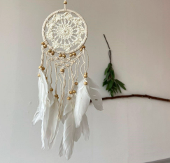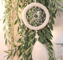 드림캐쳐 브랜드 제품 행운 부르는 벽 장식 모빌 추천 종류 네 번째, 추억을 파는 상점 드림캐쳐 드림캐처 마크라메 S 화이트 제품은 보고 있으면 마음이 편안해지는 마크라메 드림캐쳐이다. 100% 핸드메이드 제품으로 얇은 면사끈에 깃털을 묶어 만든 "인도네시아 발리" 제품이다.