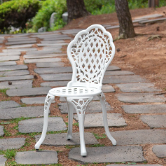 알루미늄 야외 의자 브랜드 정원 테라스 가구 체어 제품 추천 네 번째, 에이비퍼니쳐 로즈 야외 정원 카페 주물 알루미늄 의자 제품은 여름에 햇볕 나는 테라스에 앉아 즐기는 여유처럼, 기분 좋은 순백색의 유럽풍 디자인 로즈 야외 주물 의자로 매장 디스플레이용, 카페 및 레스토랑의 야외 인테리어용, 우리 집 테라스, 정원, 옥상 등 어느 곳이라도 사랑스러운 무드로 인테리어를 연출한다.