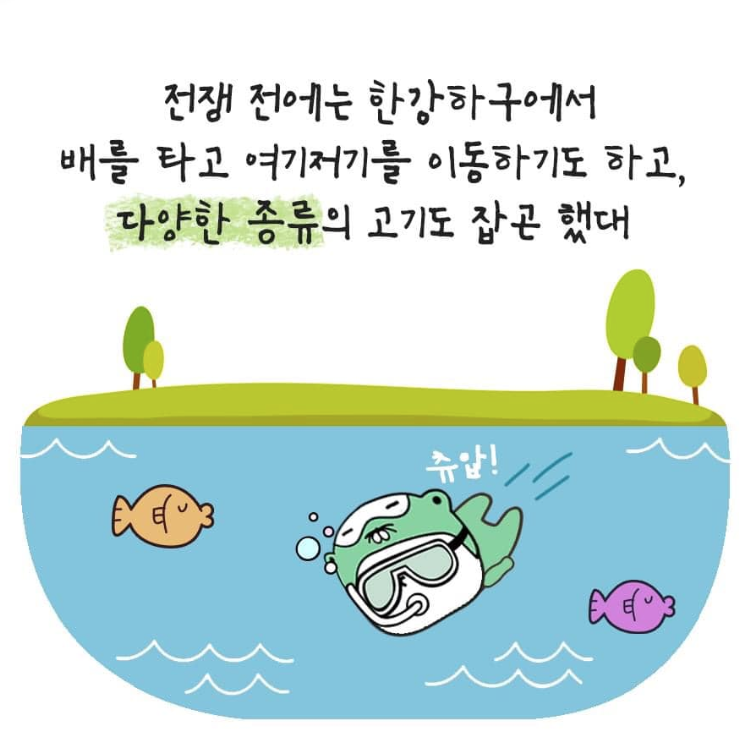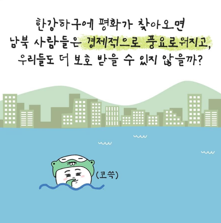전쟁 전에는 한강하구에서 배를 타고 여기저기를 이동하기도 하고, 다양한 종류의 고기도 잡곤 했다. 이 지점에서 한 가지 궁금한 것이 생긴다. 한강하구에 평화가 찾아오면 남북 사람들은 경제적으로 풍요로워지고, 우리들도 더 보호 받을 수 있지 않을까?