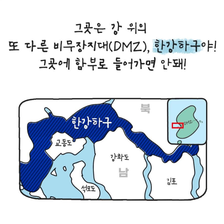 한강하구는 남과 북을 나누는 또 하나의 분계선이자 강 위의 비무장지대이다. 하지만 한강하구는 비무장지대(DMZ)와는 조금 다르다. 이번 글에서는 통일부에서 전하는 자료를 통해 한강하구에 대하여서 알아보도록 하겠다.