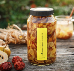 과일청 선물세트 제품 설날 명절 수제청 답례품 추천 두 번째, 초코써니 [배도라지대추생강청] 과일수제청 차 과일청 500g 약돌배약도라지 답례품 부모님 선물세트 제품은 약돌배 약도라지 외에도 생강과 최상급대추가 더 첨가돼서 환절기 선물용으로 많이 나가는 제품이다. 우리가 흔히 먹는 노란 배가 아닌, 야생돌배인 것이 특징이다.