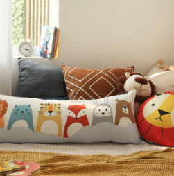 동물 바디필로우 브랜드 키즈 애견 쿠션 베개 제품 추천 첫 번째, 쉬즈홈 애니멀 고밀도 순면 유아 바디필로우 아기 쿠션 침대가드 제품은 동물 자수 디자인으로 아이들이 좋아한다. 아이 키에 맞춘 65X15cm 사이즈로 품에 쏙, 솜이 있는 말랑한 귀로 촉감놀이가 가능하다. 고밀도 알러지케어 원단으로 자극이 적다. 양쪽 파이핑 마감으로 튼튼하고 견고한 것이 특징이다.