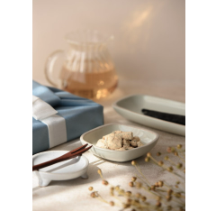 미세스도라지만의 노하우로 도라지 특유의 쓰고 아린 맛을 최대한 제거하고, 부드럽고 말캉말캉 쫀득한 식감으로 누구나 부담 없이 도라지정과를 드실 수 있다. 한 땀 한땀 모든 공정을 수작업으로 정성 가득 담아 제작하는 세련된 포장은 받는 분의 기쁨과 드리는 분의 품격을 더욱 높인다.