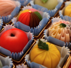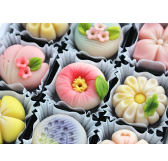 겉은 쫀쫀하고 속은 사르르 녹는 고나시 속에 백앙금, 팥, 유자, 인절미, 흑임자, 초코 속앙금을 넣었다. "생각보다 달지 않아서 맛있다"는 말을 많이 듣는 당도이기 때문에 부담 없이 기분 좋게 드실 수 있는 프리미엄 디저트 세트이다.