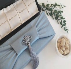 도라지정과 선물세트 고급스러운 보자기 제품 명절 상견례 추천 두 번째, 하늘도라지 콩고물 도라지정과 상견례 선물 250g 제품은 " 무설탕 무방부제 무첨가" 오직 국산 도라지와 국산 쌀조정으로만 정성드려 만든다. 중간 유통과정을 거치지 않고 "직접 만들어 직접 판매" 고객 안심 생산 & 책임 판매한다. 신랑 신부 일러스트 상견례 띠지/상견례 카드로 구성된 상견례 맞춤 패키지, 그리고 다양한 보자기 포장으로 나만의 선물 완성할 수 있다.